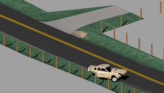 rear end strikes the large boulder below. An instant